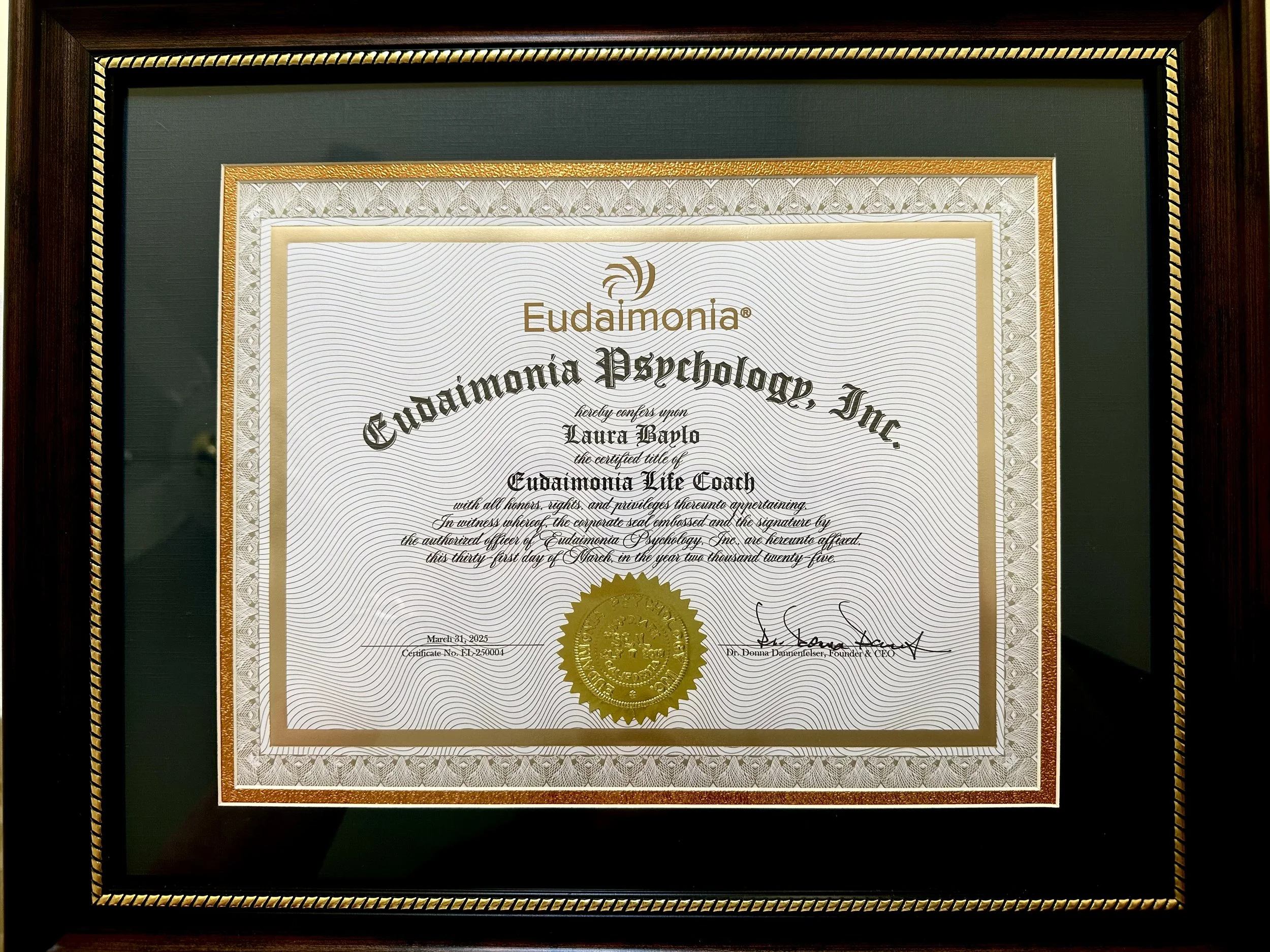 As an Eudaimonia Life Coach, I look forward to working with women who feel unfulfilled, stuck, and only dream about their own happiness. I would be honored to help you step into your best life.